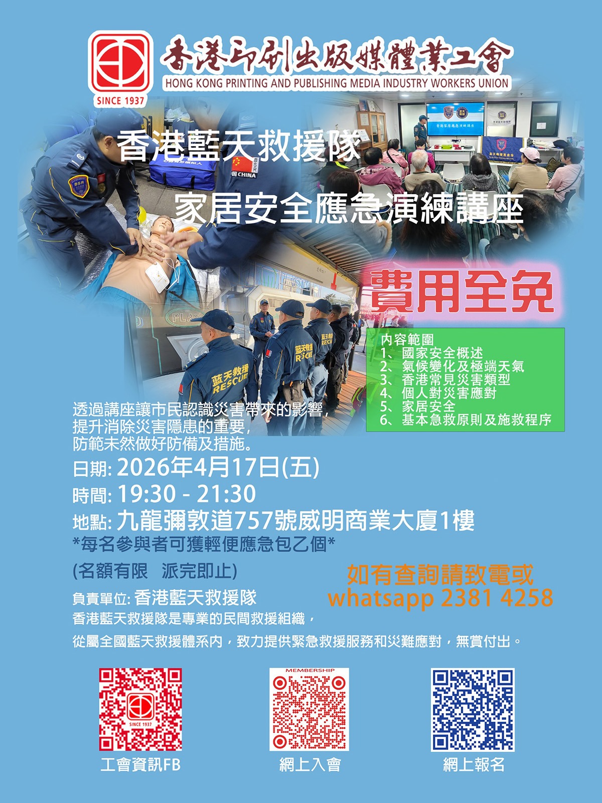 香港藍天救援隊家居安全應急演練講座2026.04.17 內容範圍 國家安全概述 氣候變化及極端天氣 香港常見災 […]
