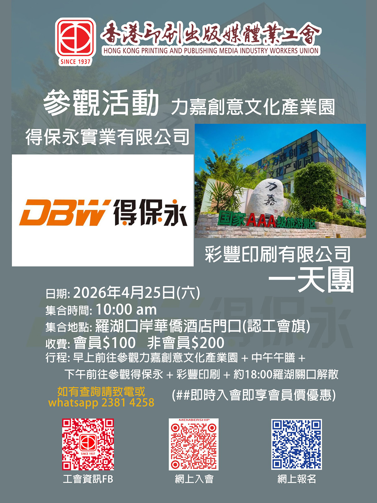 參觀活動 — 一天團2026.04.25 力嘉創意文化產業園 得保永實業有限公司 彩豐印刷有限公司 […]